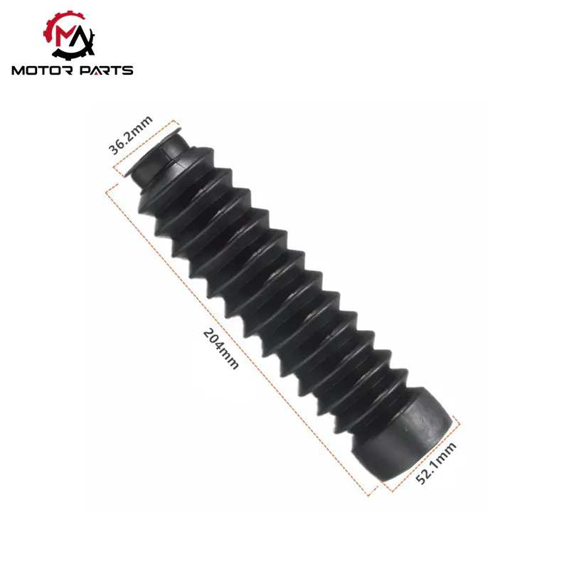 Motosikletin ön amortisör toz kapağı, amortisörün genleşmesi ve büzülmesiyle oluşan hafif titreşimleri etkili bir şekilde tamponlayabilen, aynı zamanda sürüş konforunu artırırken titreşimlerin neden olduğu gürültüyü önemli ölçüde azaltabilen son derece elastik ve yumuşak malzemelerden yapılmıştır; Bazı ürünler, ağırlığı sıradan modellere göre %30 oranında artıran kalınlaştırılmış yapılarla özel olarak tasarlanmıştır. Küçük taş darbeleri ve ağaç dalı çizikleri gibi dış etkilere karşı güçlü bir direnç göstererek amortisörler için kapsamlı koruma sağlarlar.