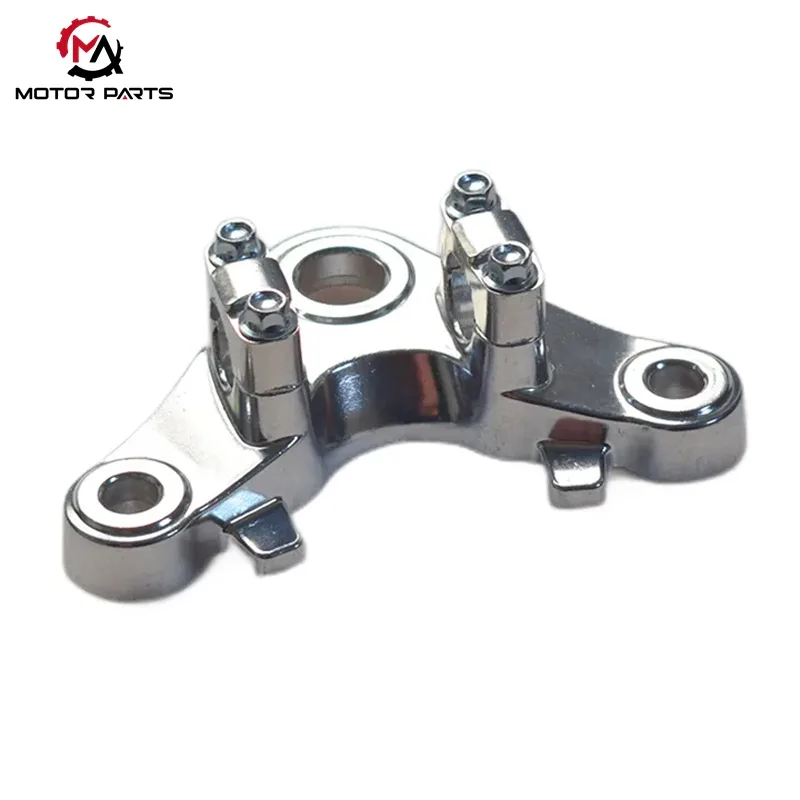 CG125 motosikletinin ön uç sisteminde üst bağlantı plakası, ön çatalı, amortisörü ve çerçeveyi bağlayan çekirdek yük taşıyan bileşendir. Honda CG125 Motosiklet Üst Bağlantı Plakası, endüstri standardı "bumerang şekli" yapısal tasarımını benimseyerek, bilimsel olarak tasarlanmış delik yerleştirme yoluyla istikrarlı yük dağıtımı ve hassas direksiyon kontrolü sağlar.
